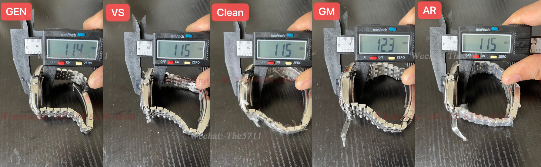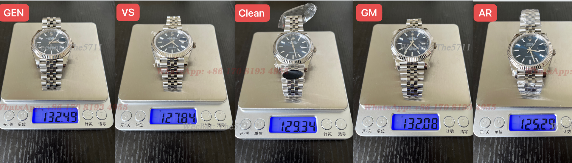 All the replicas haven't take off the plastic protector. the VS and GM have removed the steel strap protector as you can see, the GM is closest in weight to the GEN !
