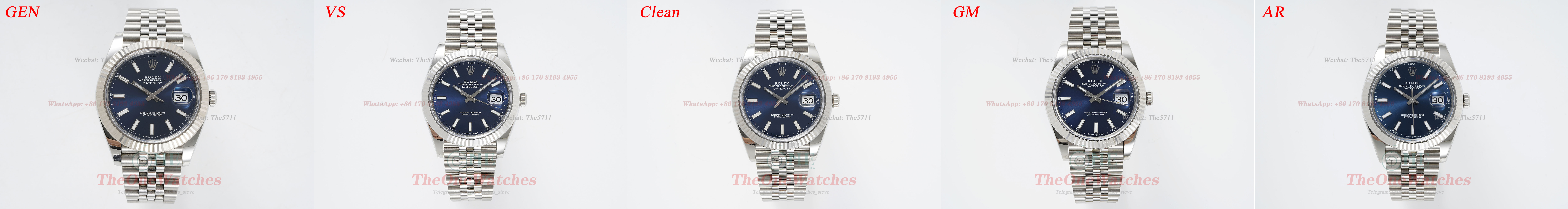 Gen, VSF, Clean, GM and AR, 126334 41mm blue datejust detailed comparison