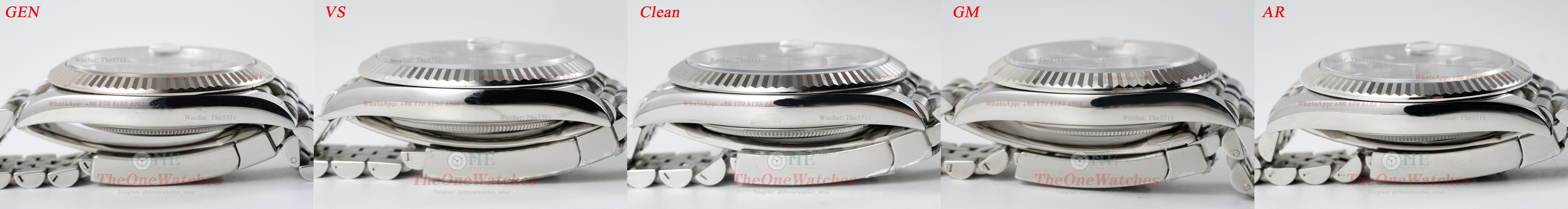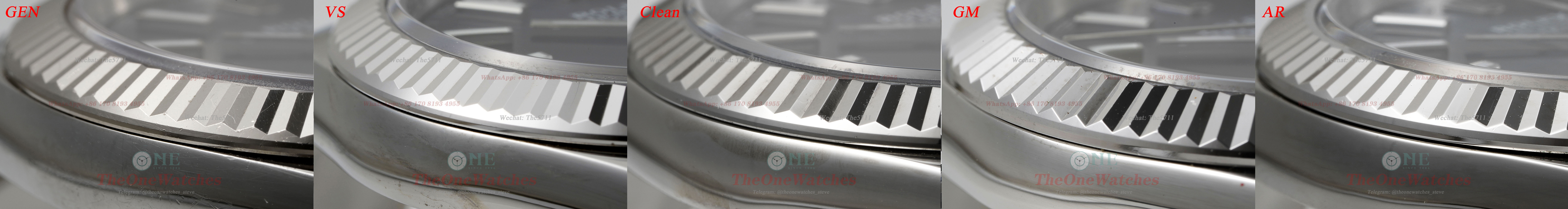 First, we can check the location of arrow pointed, the layered VS on the side of the bezel is the closest to the GEN, which is commendable, followed by the AR, which is less pronounced in the C factory, and the GM, which is almost flat.